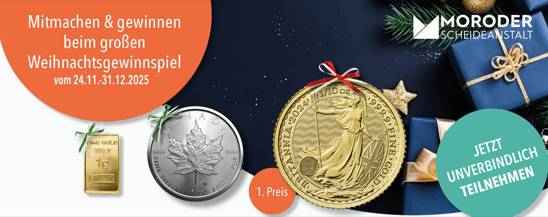 Die Moroder Scheideanstalt GmbH, Kaninenberghöhe 2, 45136 Essen (im Folgenden „Veranstalter“ genannt) bietet über die Website https://www.moroder-scheideanstalt.de/gewinnspiel/ sowie in ihrer Geschäftsstelle in Essen ein Gewinnspiel an.